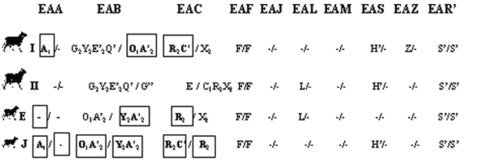 Antud näite puhul pöörame peatähelepanu veregruppide EAA, EAB ja EAC süsteemidele. EAA süsteemis on vasikas (J) oma emalt (E) pärinud alleeli "-" (retsessiivne), EAB süsteemis alleeli Y2A'2 ja EAC süsteemis alleeli R2. Seega isa poolt on uuritav vasikas pärinud eelpool nimetatud veregrupisüsteemides vastavalt alleelid A1, O1A'2 ja R2C'. Nimetatud alleelid esinevad pulli I genotüübis. Pulli II genotüübis neid ei tuvastatud. Ülejäänud geneetiliste süsteemide osas ei saa antud juhul kumbagi pulli välistada. Lähtudes sellest, et järglasel ei saa esineda ühtki verefaktorit ega alleeli, mis puudub tema vanematel, saab antud näite puhul olla uuritava vasika (J) isaks pull I.