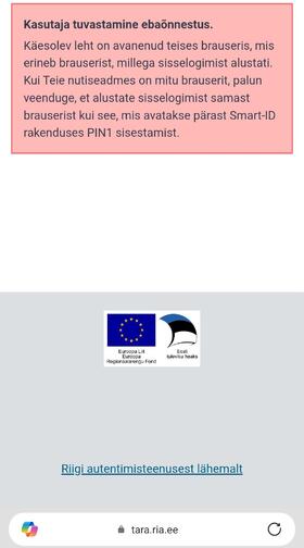 Veateate põhjuseks on see, et alustasid sisselogimist ühes brauseris (nt Chrome), kuid pärast PIN-koodi sisestamist suunab telefon Sind tagasi seadme vaikebrauserisse (nt Edge). Probleemi lahendamiseks määra telefoni seadetes vaikebrauseriks see veebilehitseja, mida sisselogimiseks tegelikult kasutad.